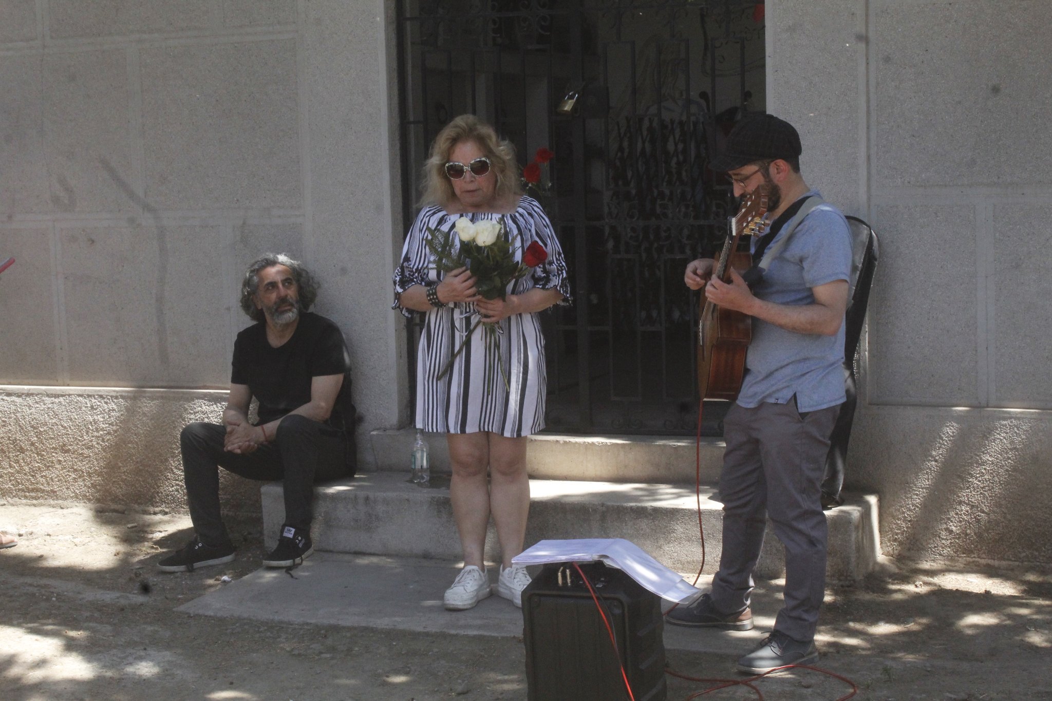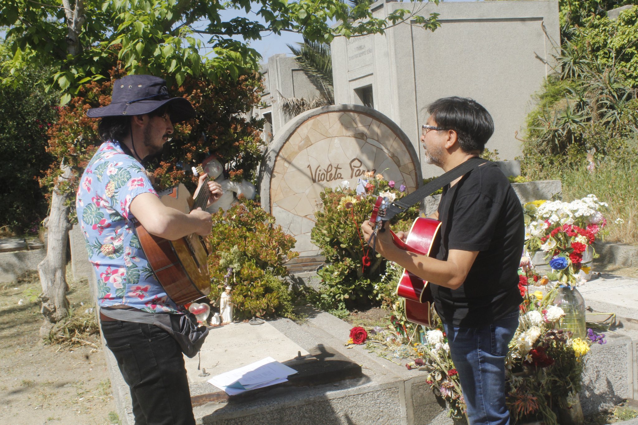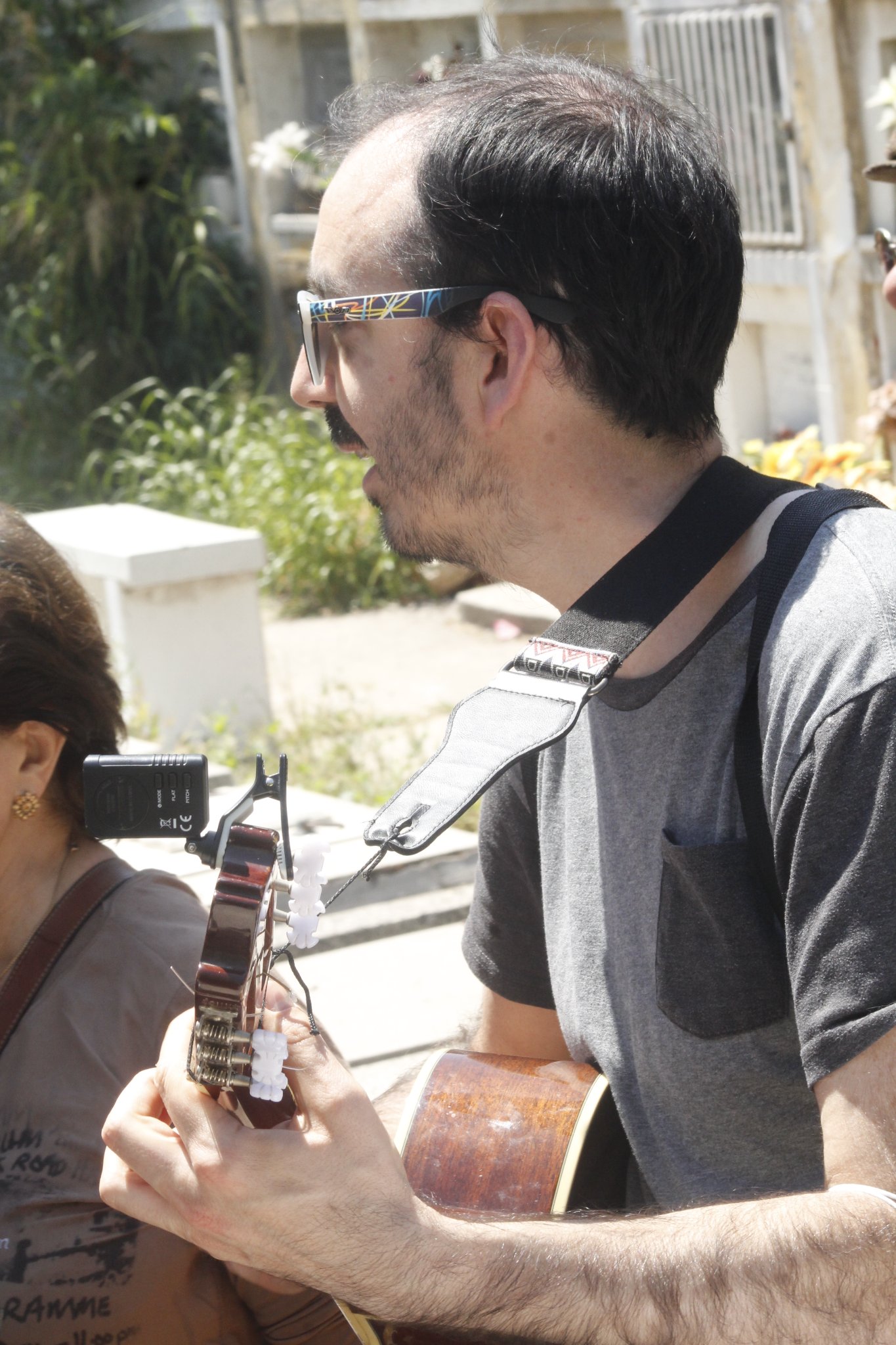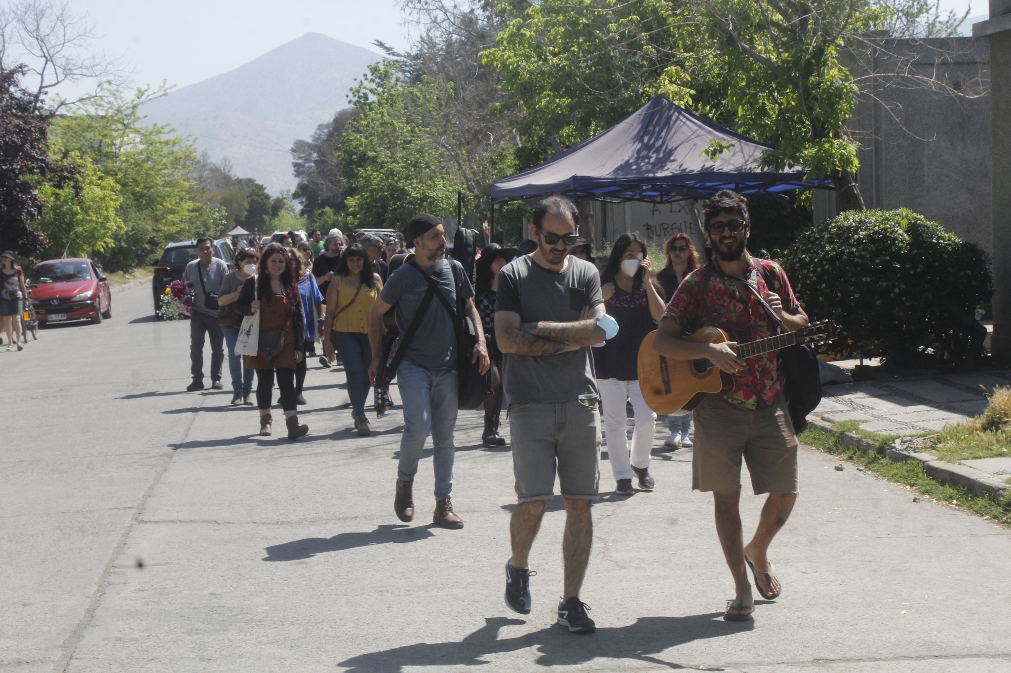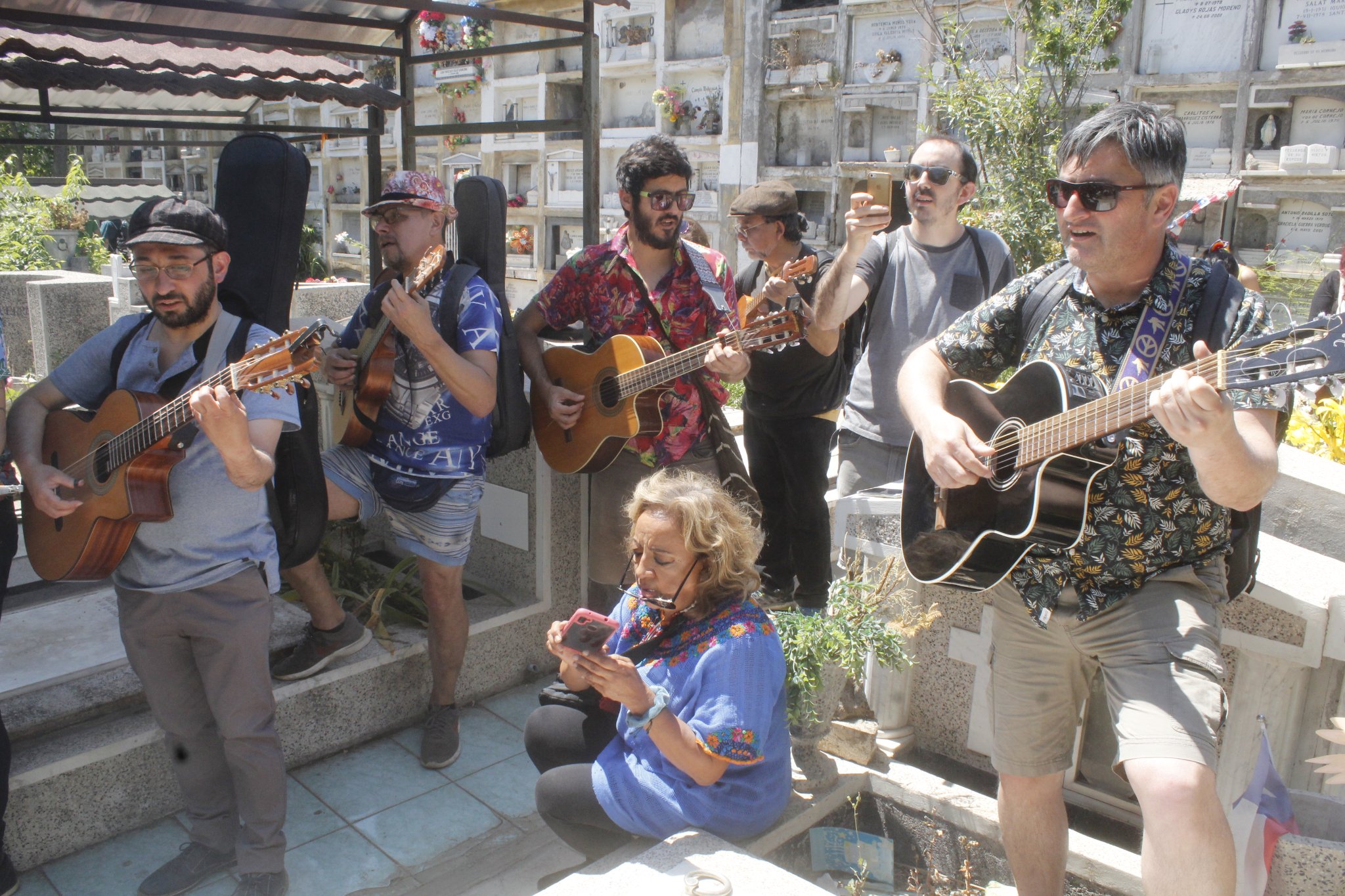 El punto de encuentro fue la tumba de Violeta Parra, donde se interpretaron las canciones «Arriba quemando el sol» y «Arauco tiene una pena», y las presentaciones del Dúo Epiphanía y La Resak. A continuación, la caravana partió hacia la tumba del recordado ex integrante del Quilapayún, Willy Oddó, quien falleció en extrañas circunstancias en 1991. En su honor, l@s guitarristas interpretaron «Canto a la pampa» (texto del poeta anarquista Francisco Pezoa musicalizado por el «Quila» y popularizado en la voz de Oddó) y «La muralla». Además, el cantor Alejandro Zagal interpretó una sentida versión de la canción «El Plan Leopardo», texto anónimo musicalizado por Oddó.